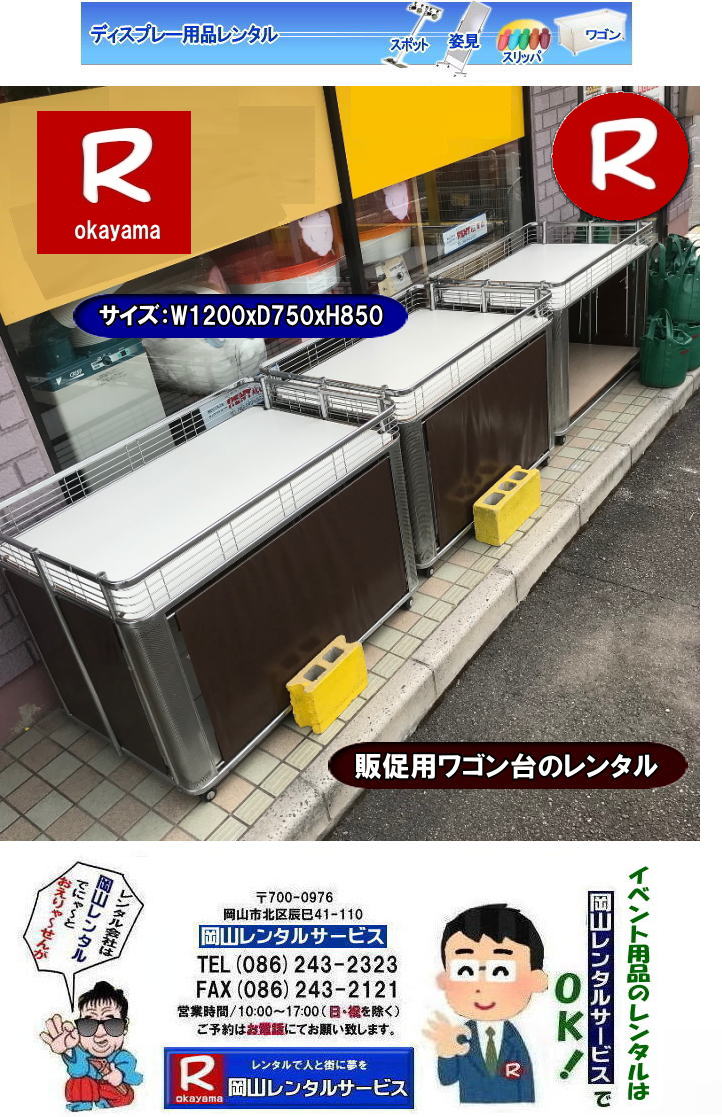 岡山|ワゴン台|レンタル|売出し用|ワゴン台レンタル|ワンタッチ折りたたみ式|ストックスペース|ワゴン台レンタル料金|レンタル価格|岡山