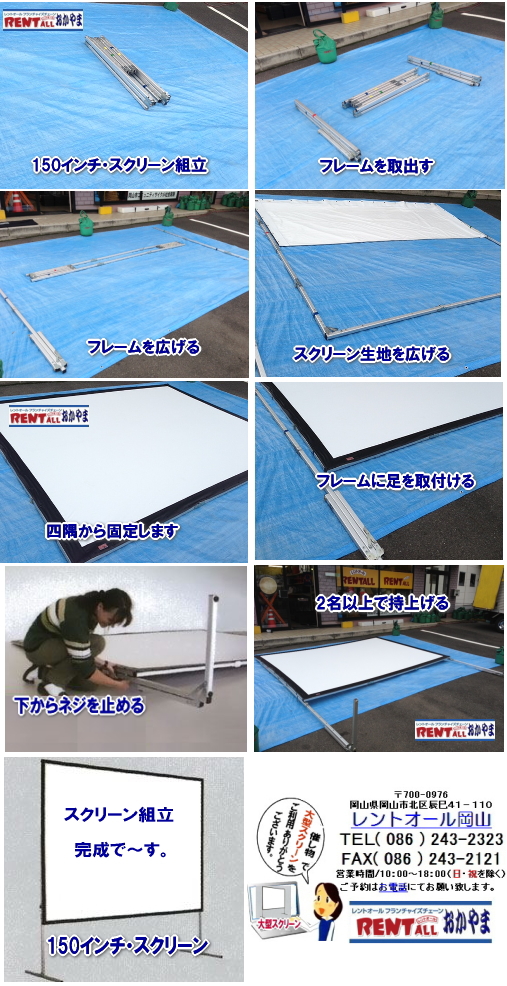 スクリーンの組立方法 ※参考画像(150インチスクリーン)