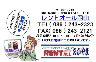 ●レンタル料金→¥16,500/1泊2日まで(税込み)