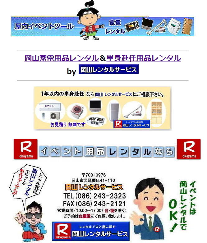春の新生活応援・家電のレンタル・単身赴任用品のレンタル 岡山レンタルサービス