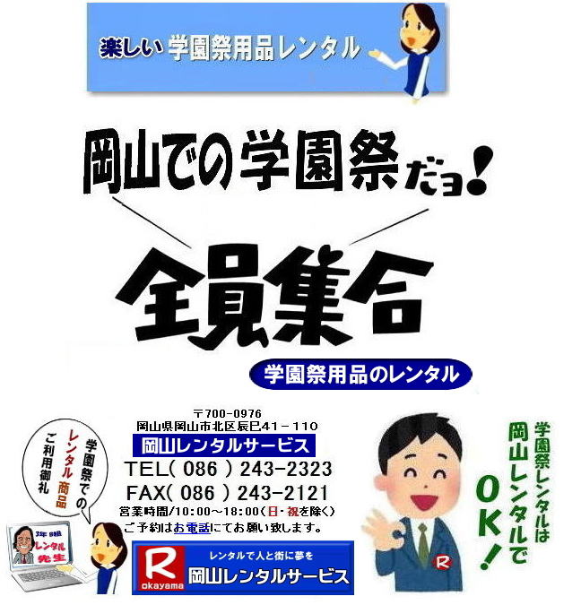 楽しい学園祭用品のレンタルは岡山レンタルサービスへ