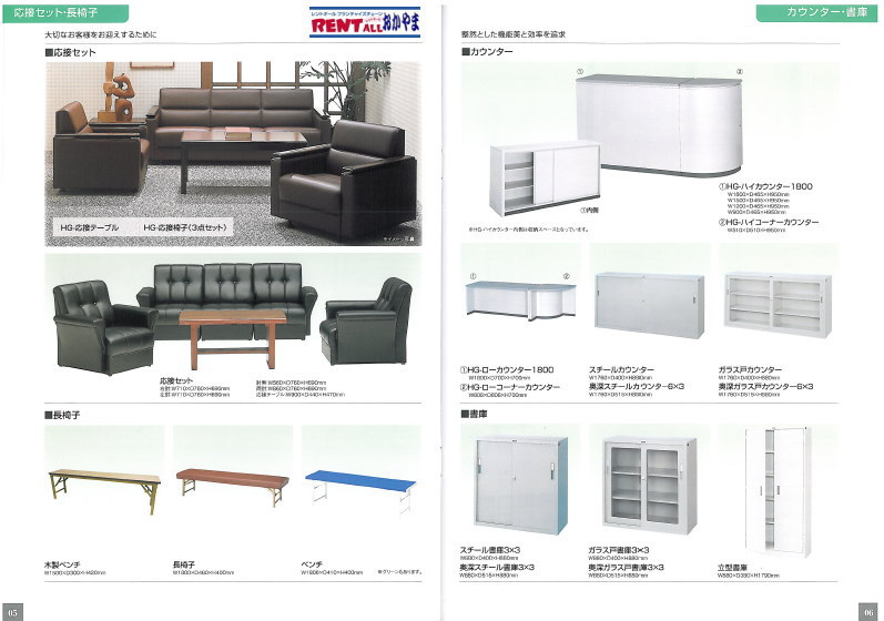 岡山 備品レンタル 応接セット レンタル 長椅子 プラスチックベンチ 木製ベンチ レンタル レントオール岡山