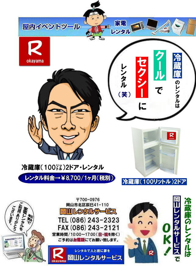 岡山レンタルサービス|TEL086-243-2323| 岡山家電レンタル|岡山家電レンタル料金| 家電レンタル価格|岡山| 岡山での 家電用品レンタル