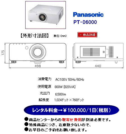 パナソニック プロジェクター PT-D6000 6500ANSI ルーメン