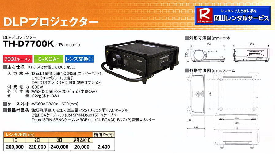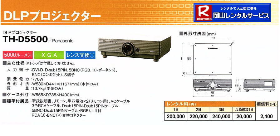 ![]() お薦め 1400ANSI ルーメン ●レンタル料金→¥8,000/1日(税別) |