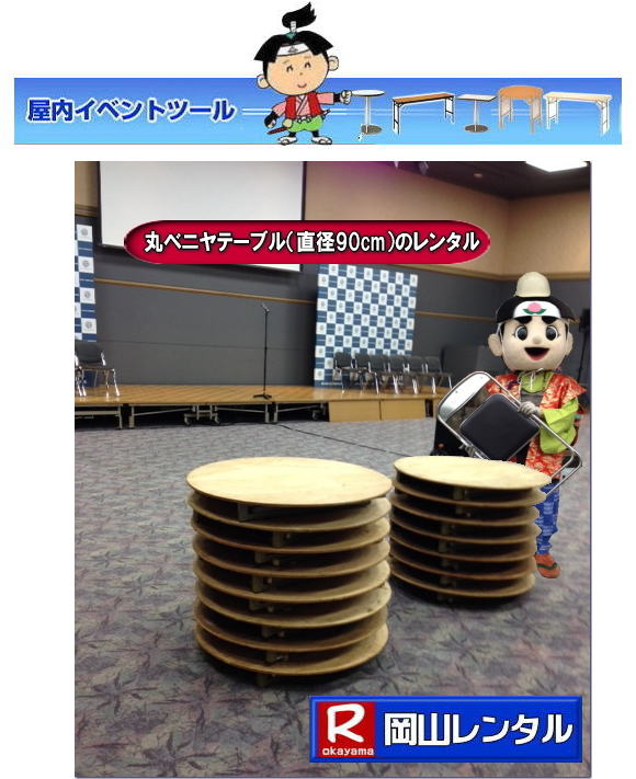 ●岡山・丸テーブル(激安)レンタルは岡山レンタルサービスへご相談下さい ●TA-017 サイズ:φ900×H700 ●レンタル料金→¥1,000/2泊3日まで(税別) ●3日目以降は¥100/1日(税別)ごと加算されます。